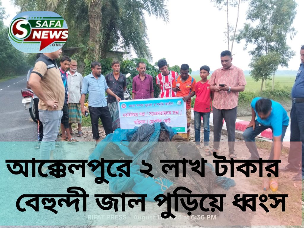 জয়পুরহাটের আক্কেলপুরে ২ লাখ টাকার নিষিদ্ধ বেহুন্দী জাল পুড়িয়ে ধ্বংস করা হয়েছে। দেশীয় প্রজাতির মাছের উৎপাদন বাড়াতে সোমবার এ অভিযান চালান উপজেলা মৎস্য বিভাগ।
