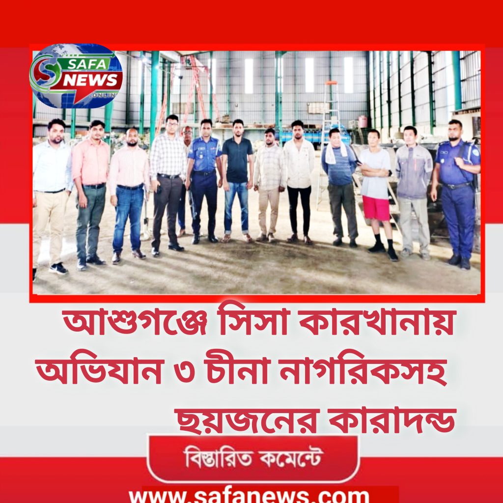 ব্রাহ্মণবাড়িয়ার আশুগঞ্জে অবৈধ সিসা কারখানায় অভিযান চালিয়ে ৩ চীনা নাগরিকসহ ৬ জনকে কারাদণ্ড দিয়েছেন ভ্রাম্যমাণ আদালত। বৃহস্পতিবার বিকেলে উপজেলা নির্বাহী অফিসার ও নির্বাহী ম্যাজিস্ট্রেট রাফে মোহাম্মদ ছড়া উপজেলার সোনারামপুর এলাকায় এই ভ্রাম্যমাণ আদালত পরিচালনা করেন।
