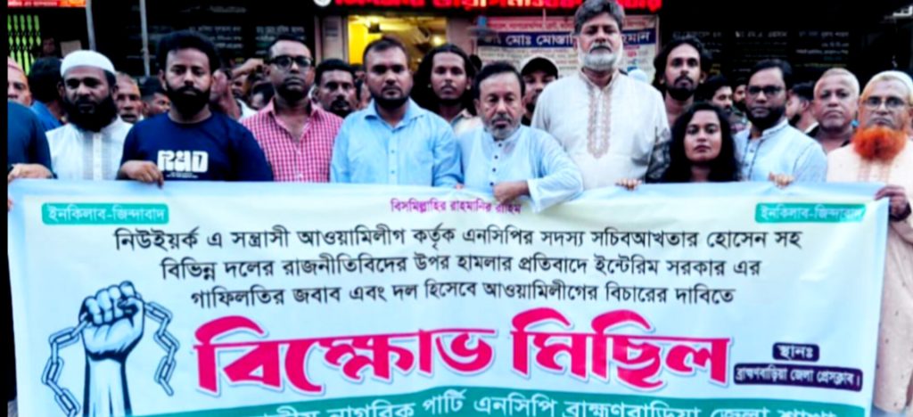 এনসিপি নেতাদের ওপর নিউইয়র্কে হামলার ঘটনায় ব্রাহ্মণবাড়িয়ায় বিক্ষোভ