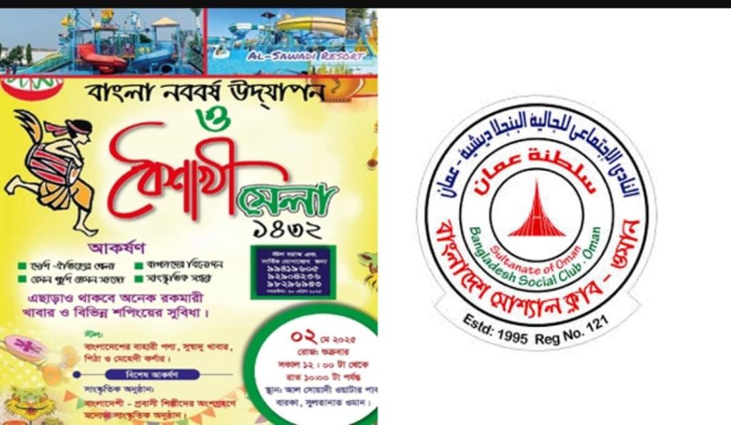 ওমান প্রবাসী বাংলাদেশীদের বিশেষ আগ্রহের কারণে রিসোর্টের ধারণ ক্ষমতার অতিরিক্ত লোকসমাগমের সম্ভাবনার বিষয়টি নিশ্চিত হওয়ার কারনে স্থানীয় প্রশাসনকে অবহিত করলে, প্রশাসনিক প্রক্রিয়া অনুসরণ করে তাদের অনুমোদনের বিষয়টি সুসম্পন্ন হতে বিলম্ব হওয়ায় ০২.০৫.২০২৫ শুক্রবার অনুষ্ঠিতব্য বাংলাদেশ সোশ্যাল ক্লাব ওমান কর্তৃক আয়োজিত বাংলা নববর্ষ ও বৈশাখী উৎসব স্থগিত করা হয়।।