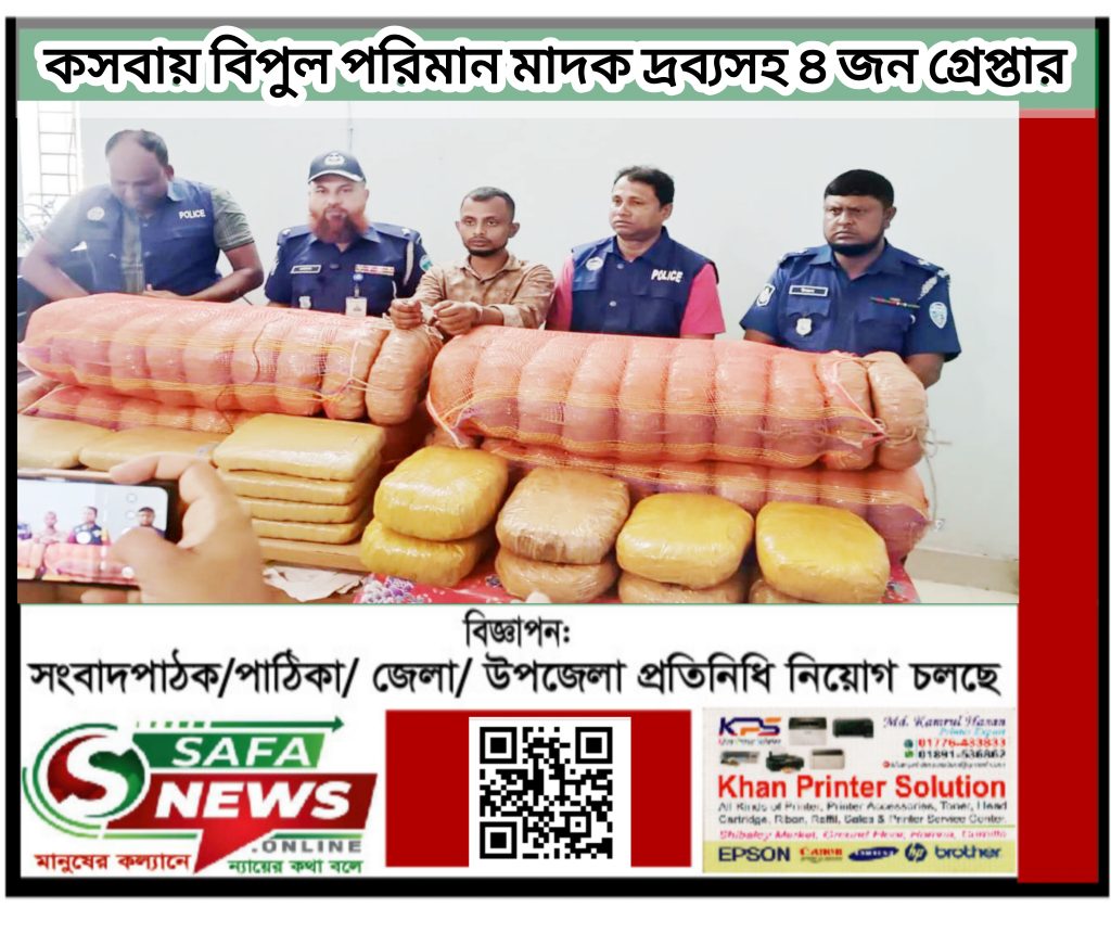 ব্রাহ্মণবাড়িয়ার কসবায় ২০ বোতল ভারতীয় স্কপ সিরাপ ও ১১৮ কেজি গাঁজাসহ চার মাদক ব্যবসায়ীকে গ্রেপ্তার করেছে পুলিশ।