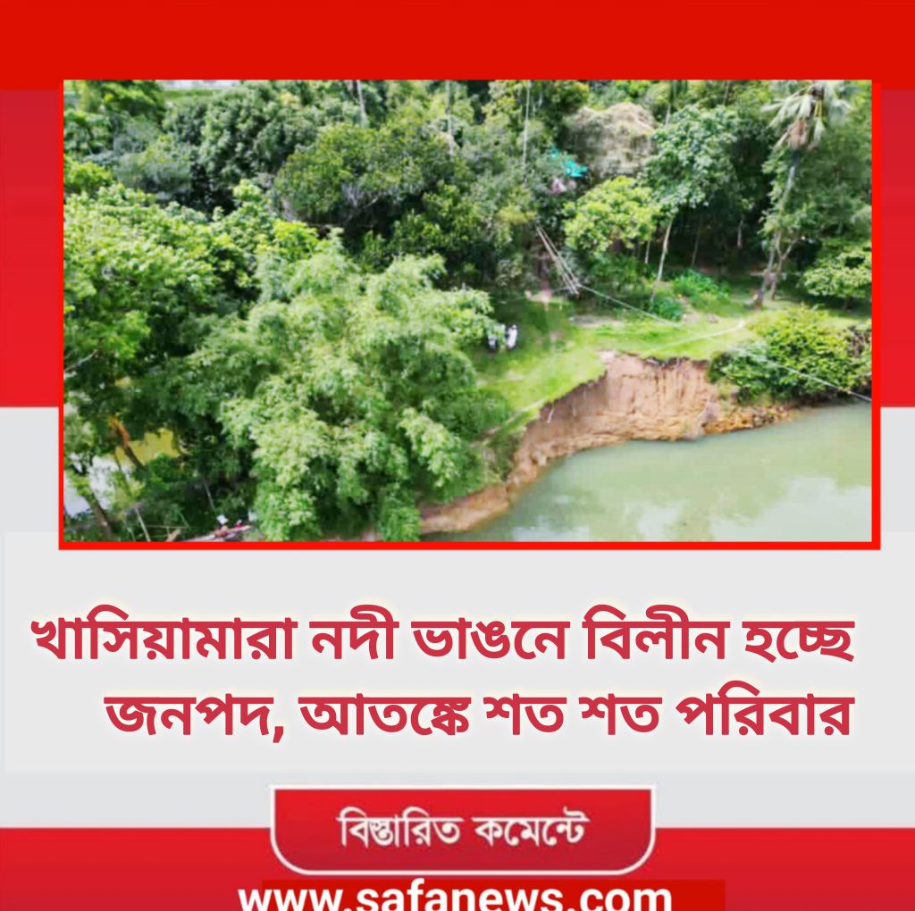 একই গ্রামের ব্যবসায়ী আব্দুর রহিম বলেন, আমার ফসলি জমির অর্ধেকই খাসিয়ামারা নদীতে বিলীন হয়ে গেছে। এখন অবশিষ্ট পুকুর ও বসতবাড়িটুকু বিলীন হওয়ার পথে।’