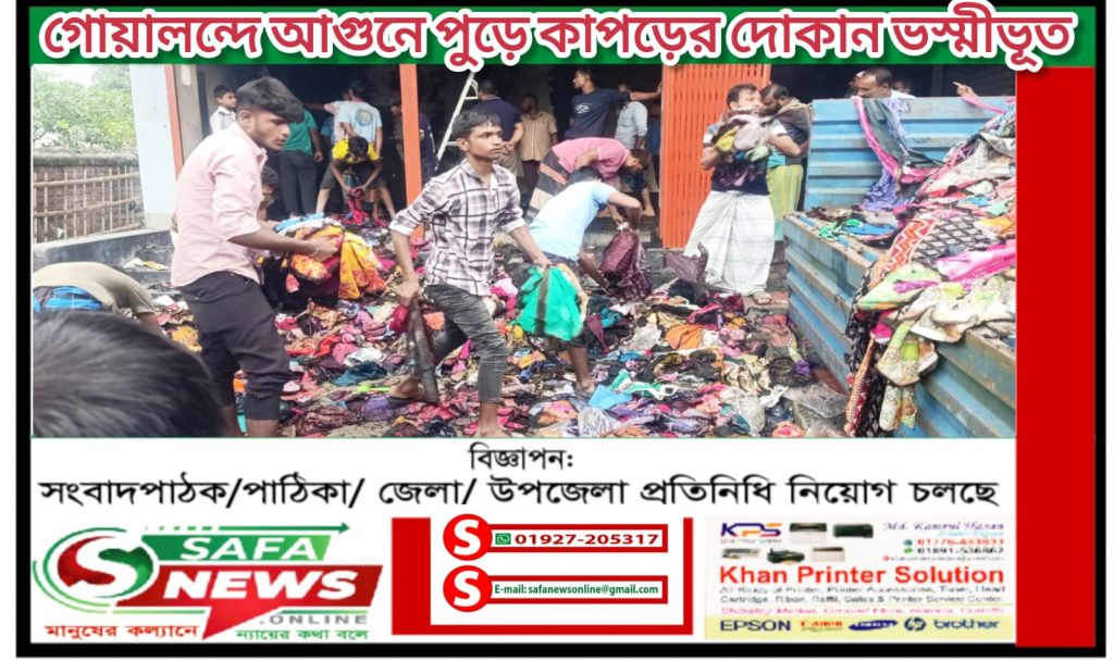 রাজবাড়ির গোয়ালন্দ উপজেলার ঢাকা-খুলনা মহাসড়কের উপজেলা পরিষদের সামনে হাবিব ম্যানশনের নিচতলায় আগুনে একটি কাপড়ের দোকানের মালামাল পুড়ে ছাই হয়ে যাওয়ার ঘটনা ঘটেছে।