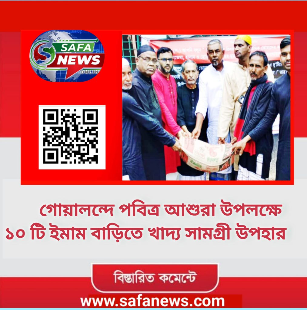 রাজবাড়ীর গোয়ালন্দে মহররম মাসের ১০ই মহররম পবিত্র আশুরা উপলক্ষে উপজেলায় অবস্থিত ১০ টি ইমাম বাড়িতে নজরানা হিসাবে প্রতি বছরের ন্যায় এবারও খাদ্য সামগ্রী উপহার দিয়েছেন হোসাইন ইয়ুথ ফাউন্ডেশন নামে একটি সামাজিক সংগঠন।