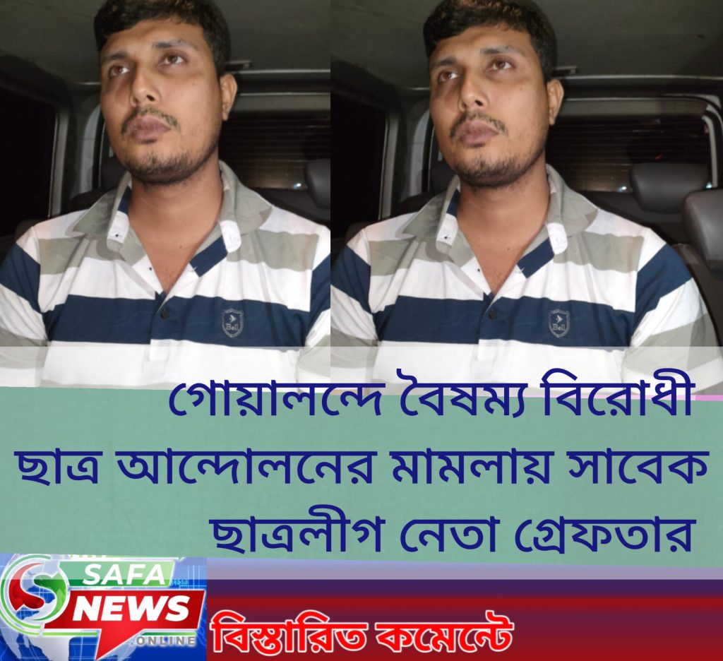 রাজবাড়ীর গোয়ালন্দ উপজেলায় বৈষম্য বিরোধী ছাত্র আন্দোলনের মামলায় সাবেক ছাত্রলীগ নেতাকে গ্রেফতার করা হয়েছে।
