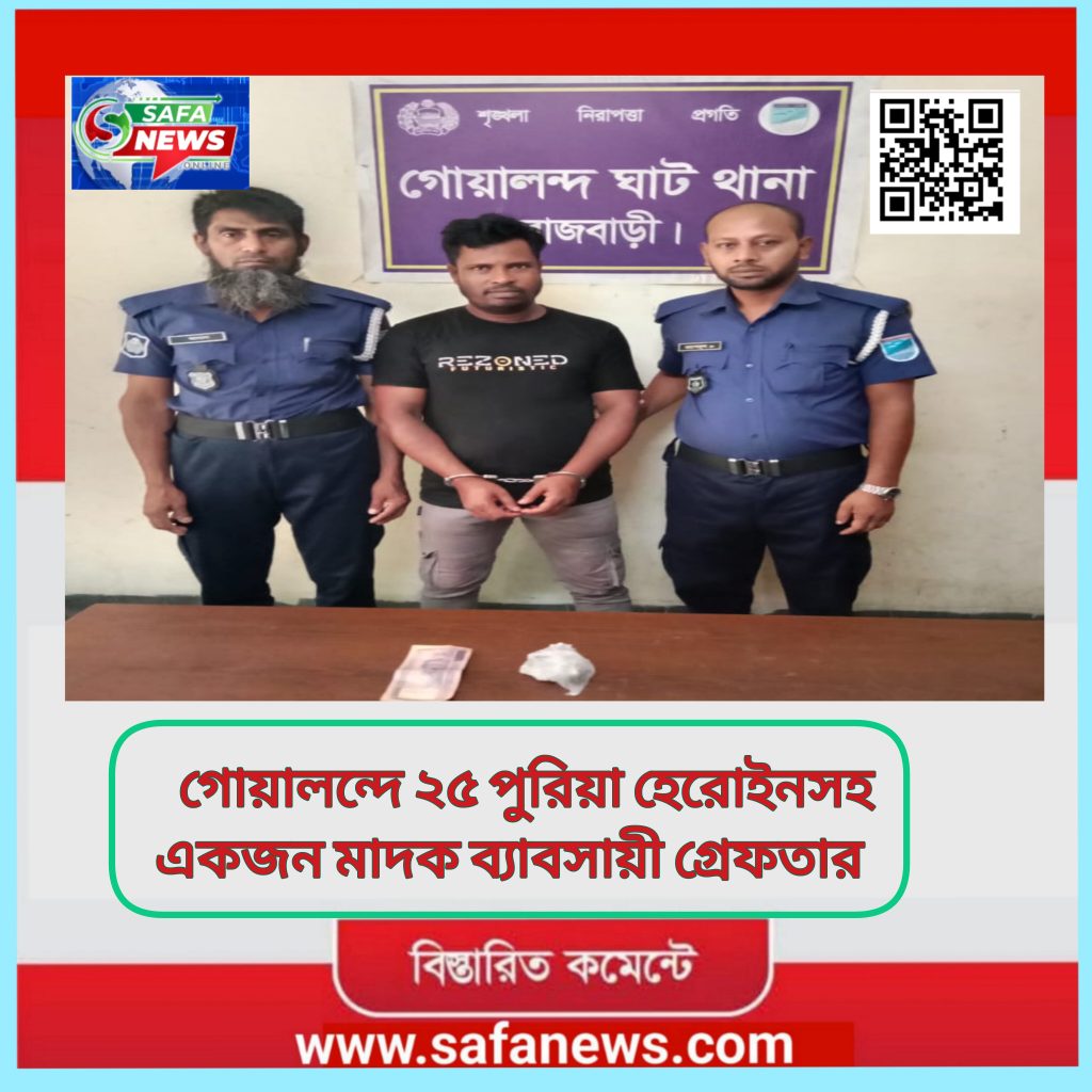 গোয়ালন্দে ২৫ পুরিয়া হেরোইনসহ একজন মাদক ব‍্যবসায়ী গ্রেফতার