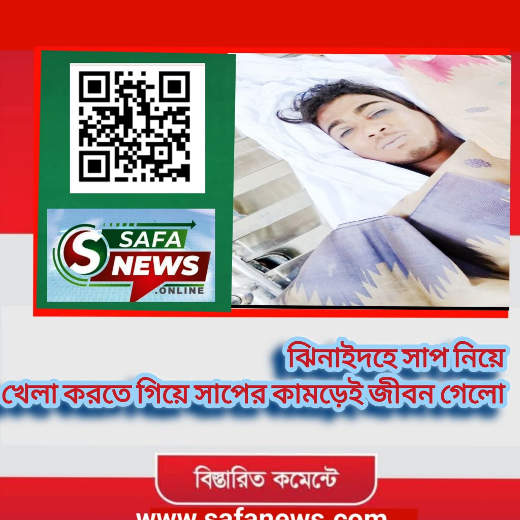 ঝিনাইদহ সদর উপজেলার কেশবপুর গ্রামে সাপ নিয়ে খেলা করতে গিয়ে মাহাফুজুর রহমান (১৬) নামের এক কিশোর সাপের কামড়ে মারা গেছে। মঙ্গলবার (১ জুলাই) দুপুরে এই ঘটনা ঘটে। নিহত মাহাফুজুর রহমান ওই গ্রামের মো. মতিয়ার রহমান মতির একমাত্র ছেলে।