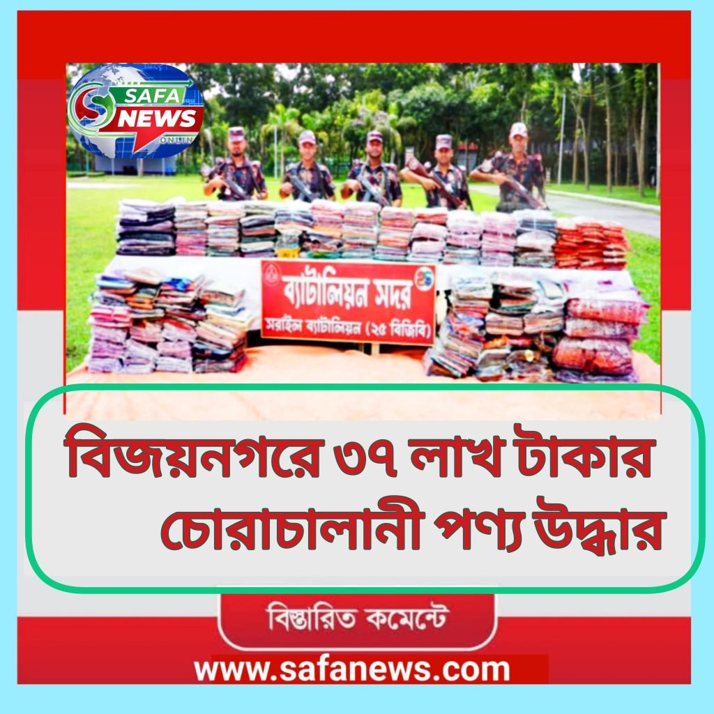 ব্রাহ্মণবাড়িয়ার বিজয়নগরে প্রায় ৩৭ লাখ টাকা মূল্যের ভারতীয় বিভিন্ন চোরাচালানী পণ্য উদ্ধার করেছে বিজিবি। বিজিবির-২৫ ব্যাটালিয়নের সদস্যরা বুধবার সন্ধ্যায় উপজেলার আউলিয়া বাজার এলাকার একটি গুদাম ঘরে অভিযান চালিয়ে এসব পণ্য জব্দ করে।